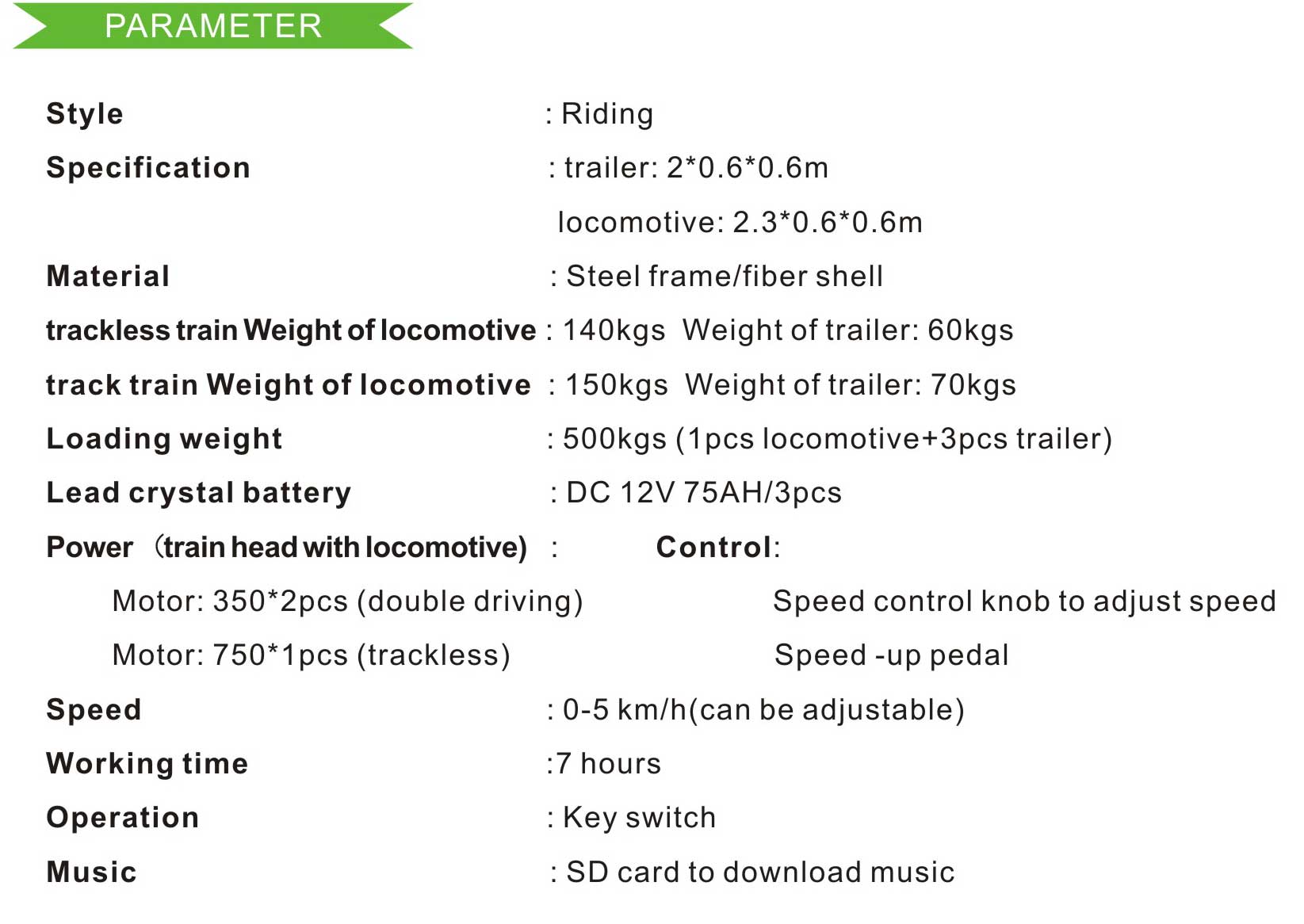 What presents you is the miniature train. With 3 KW motor in the locomotive, the train is able to run in different occasions and has widely use. It must be a convenient and environmental vehicle what you need.